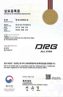 DRG ALL STAR 상표등록증