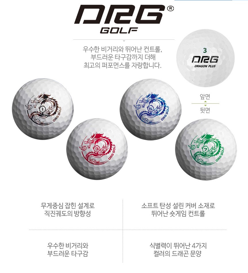 대표적으로 신개념 골프를 선도하는 DRG 골프에서는 국내 최초 4가지 컬러 드래곤 문양의 드래곤 시리즈 골프공과