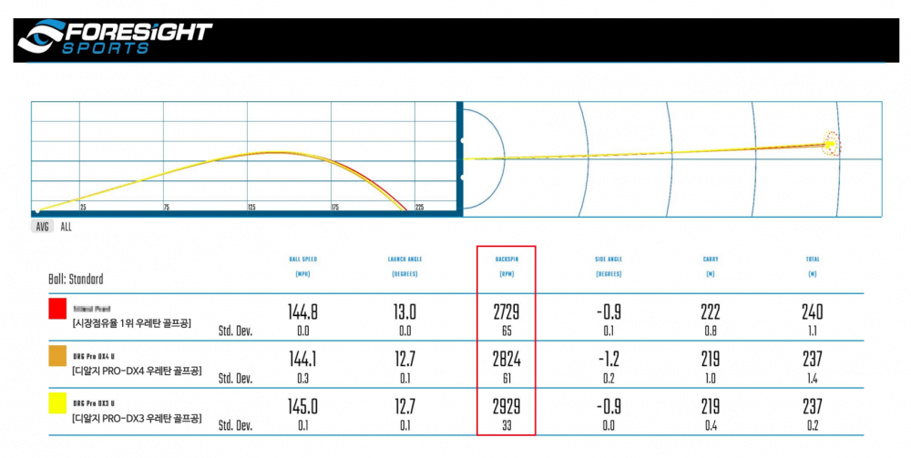 DRG 우레탄 골프공 PRO-DX4U, PRO-DX3U 제품이 메이저 브랜드 골프공의 성능에 뒤처지지 않는다는 것을 확인할 수 있었다.