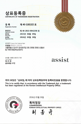 Giấy chứng nhận đăng ký nhãn hiệu Assist (25 loại)